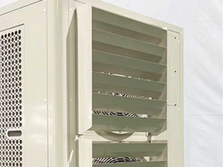 大口径の吹出口を採用することで、約50m先までパワフルな風を届けることが可能です。また、2つの吹出口は個別に風向を調整できるため、離れた作業箇所への同時送風など、現場の状況に応じた効率的なスポット冷却を実現します。
