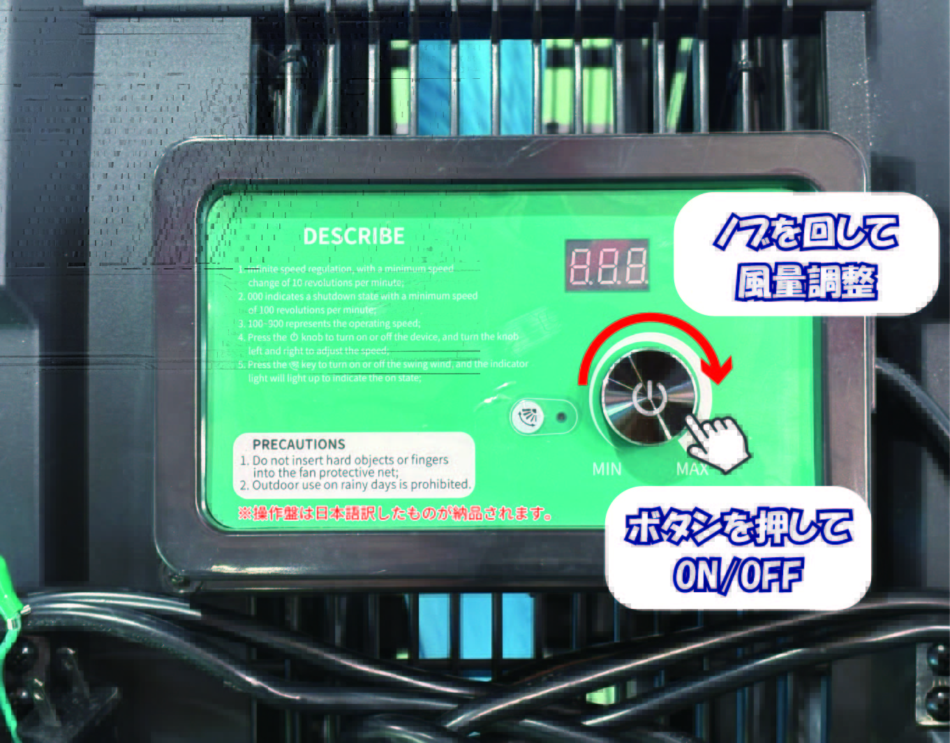 湿気を嫌う屋内や換気が必要な現場での「送風のみ」によるサーキュレーター活用から、酷暑の屋外で気化熱を利用しパワフルに体感温度を下げる「ミスト+送風」の強力冷却まで、ボタン一つで作業環境に合わせて即座に切り替えが可能です。また本体横に付属している操作パネルで誰でも簡単に操作可能です。